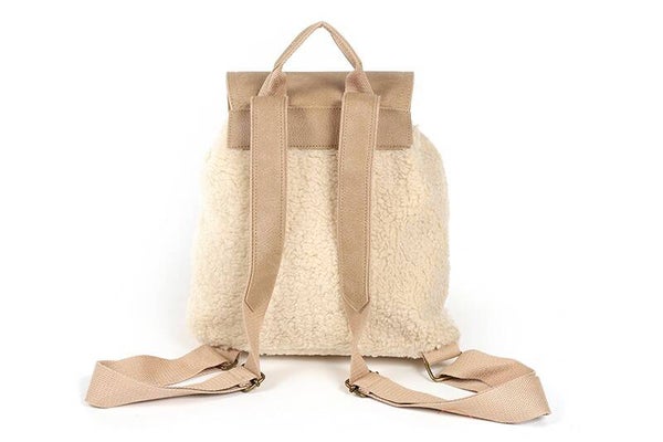 Deze stoere rugzak is een echte eyecatcher dankzij de mooie zachte teddy stof in combinatie met Veganistisch leer.