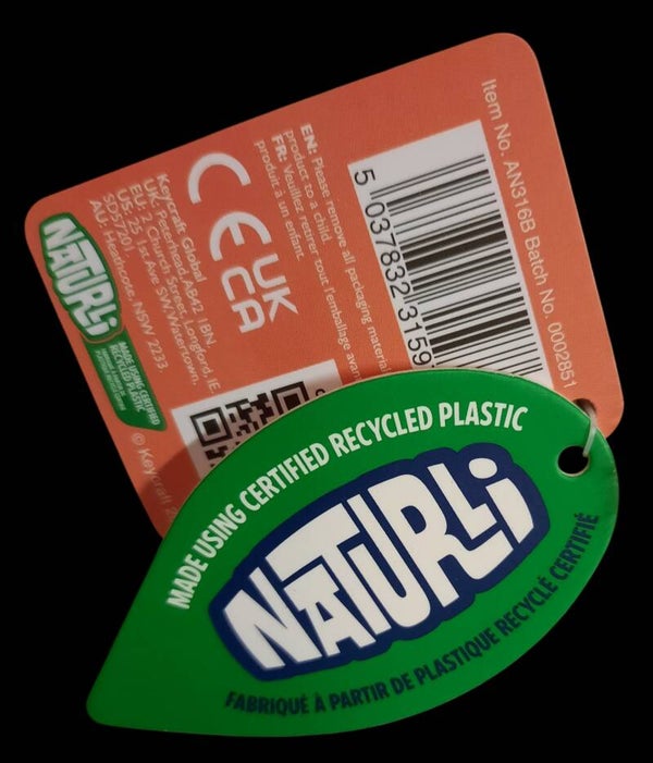 Gemaakt van gerecycled plastic.