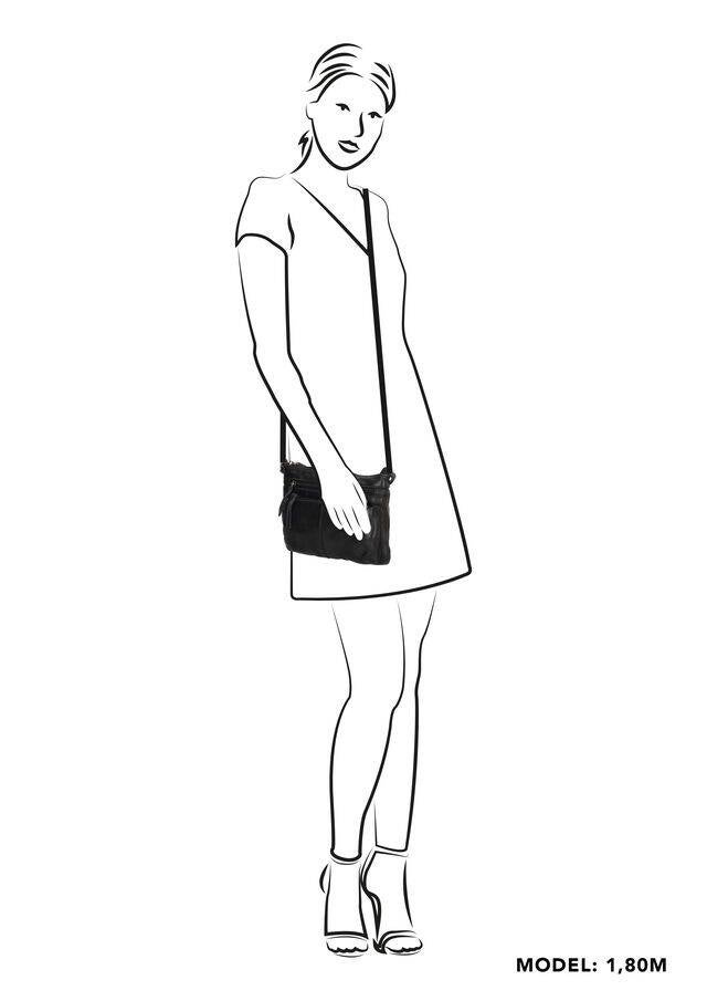 Mooie kleine, leren schoudertas uit de Paint Rock serie van Hide & Stitches. Het hoofdvak is met een rits afsluitbaar en heeft binnenin een insteekvakje en een ritsvakje. Op de voorkant van de tas zitten twee ritsvakken en ook op de achterkant van de tas zit een ritsvak. De tas kan over de schouder maar ook als crossbodytas schuin over het lichaam gedragen worden.