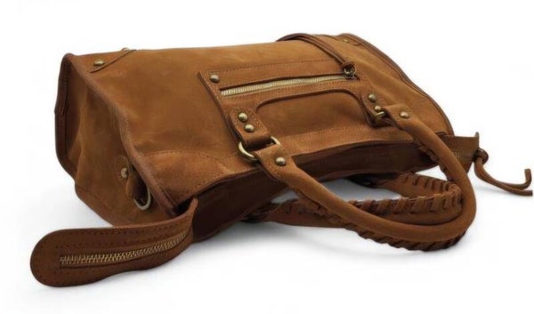 Deze luxe Italiaanse tas van premium suède leer in Arancio onderscheidt zich door zijn tijdloze elegantie en verfijnd ontwerp, geïnspireerd door grote luxemerken.