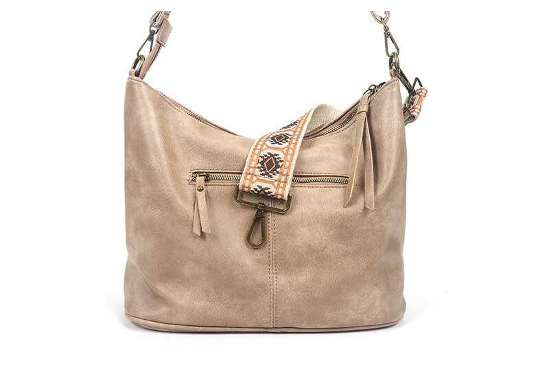 Dutch Schoudertas Cala met geweven band - Taupe